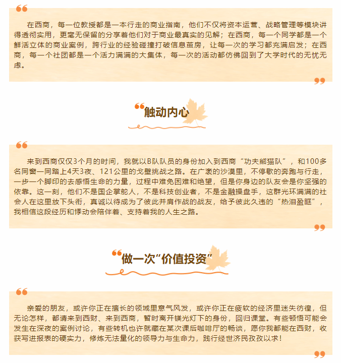 学长学姐说|西财EMBA :一次人生独有的价值投资