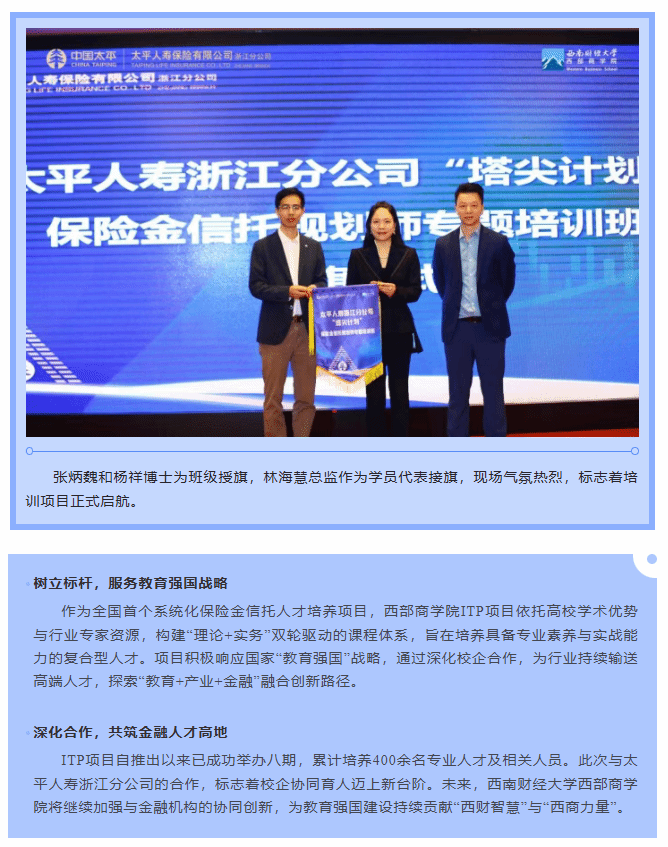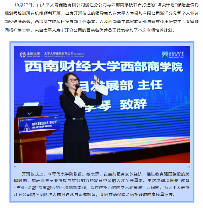 太平人寿浙江分公司“塔尖计划”保险金信托规划师培训班在杭州顺利开班