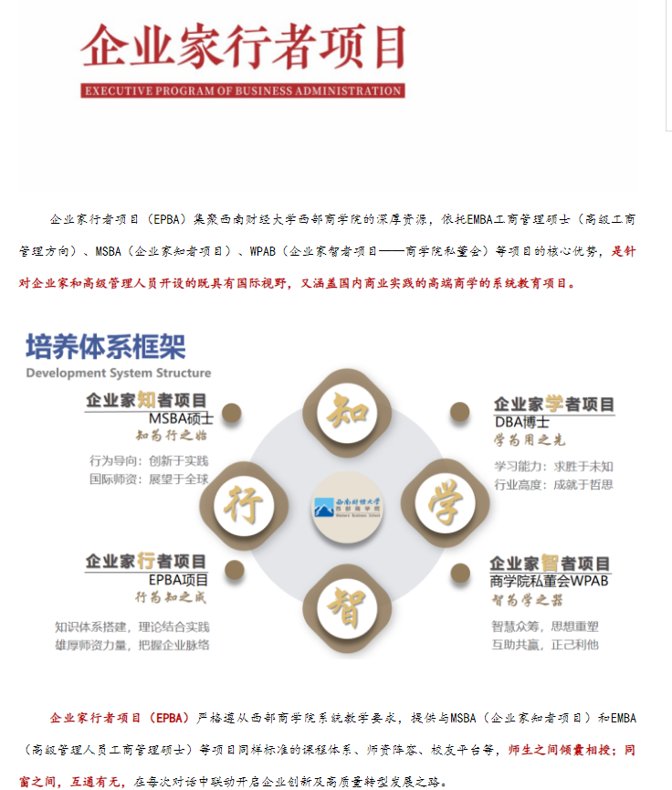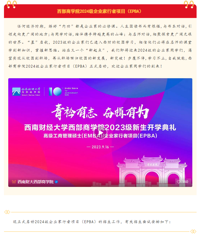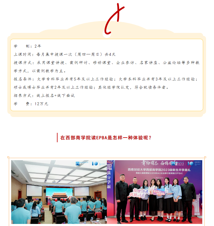 青衿有志・奋楫有为 |西部商学院2024级企业家行者项目(EPBA)招生正式启动