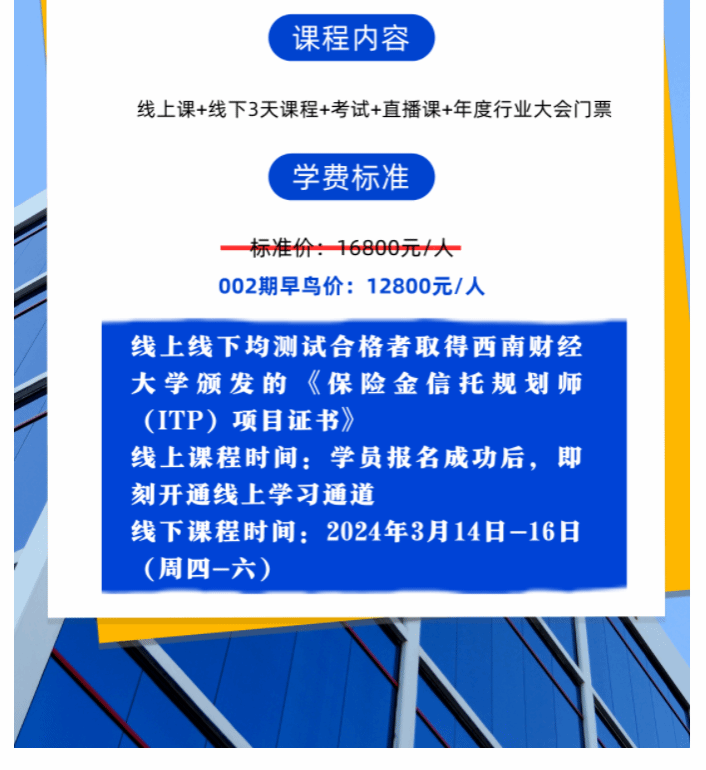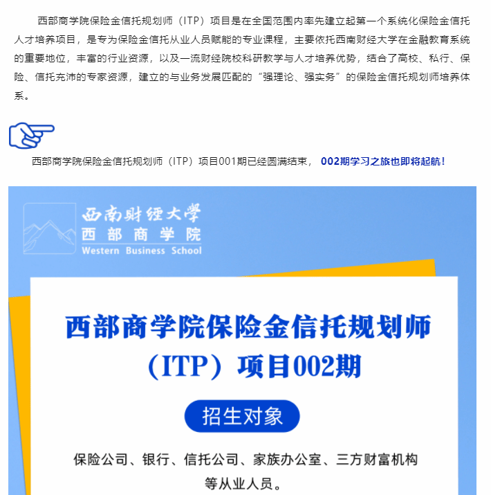 最后一天 报名截止 | yl1111永利集团西部商学院保险金信托规划师(ITP)项目002期开班在即
