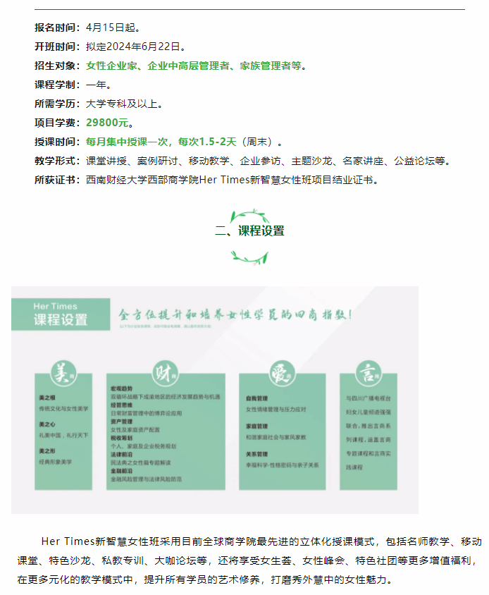 名额有限,报名开启!西部商学院Her Times新智慧女性班004期报名正式开始!