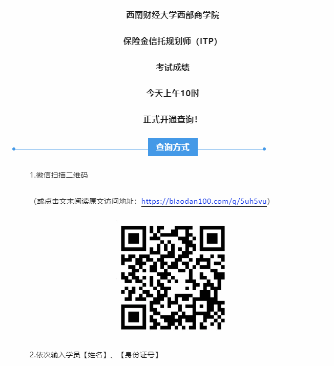 今天10点!西部商学院保险金信托规划师(ITP)考试可以查分了!