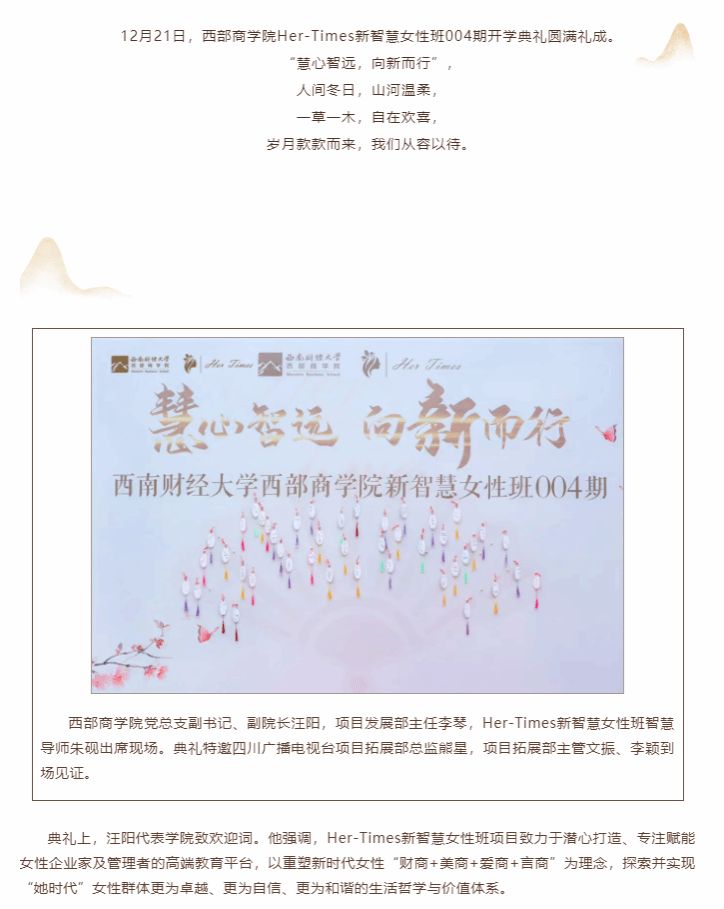 慧心智远 向新而行丨西部商学院Her Times-新智慧女性班004期开学典礼圆满礼成