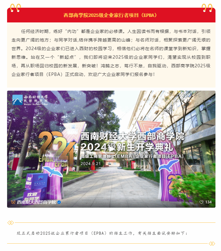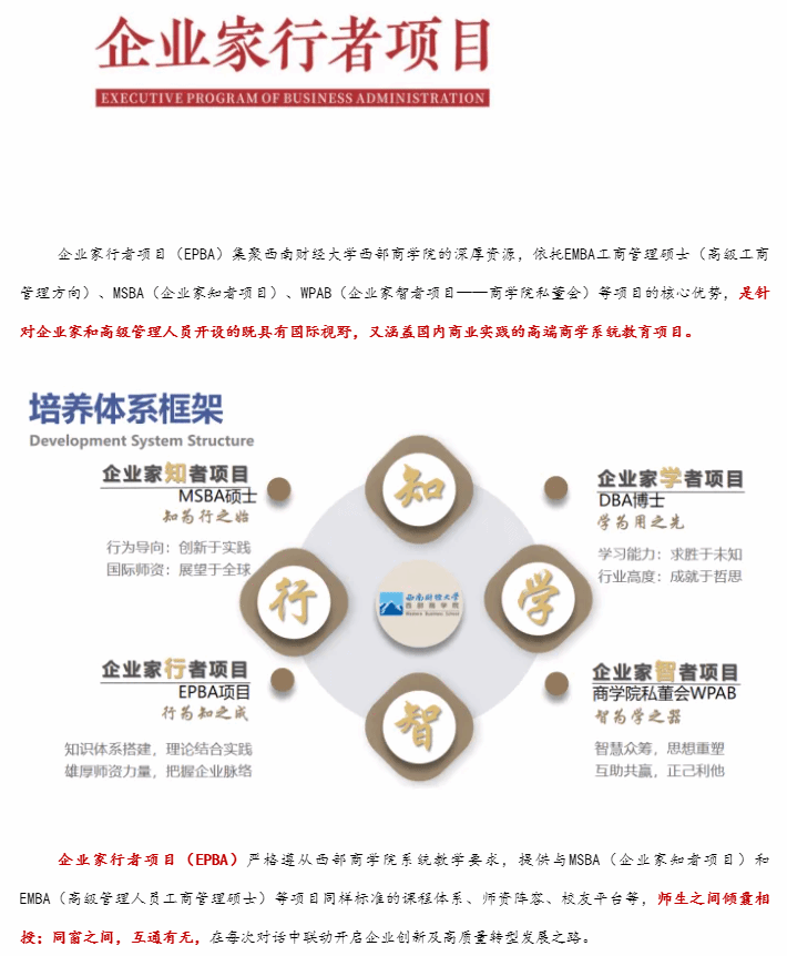 鸿鹄之志·笃行不怠|西部商学院2025级企业家行者项目(EPBA)招生正式启动