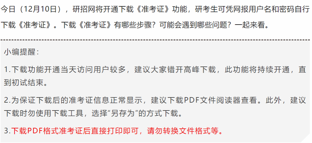 2026研考生注意啦,10日开通《准考证》下载