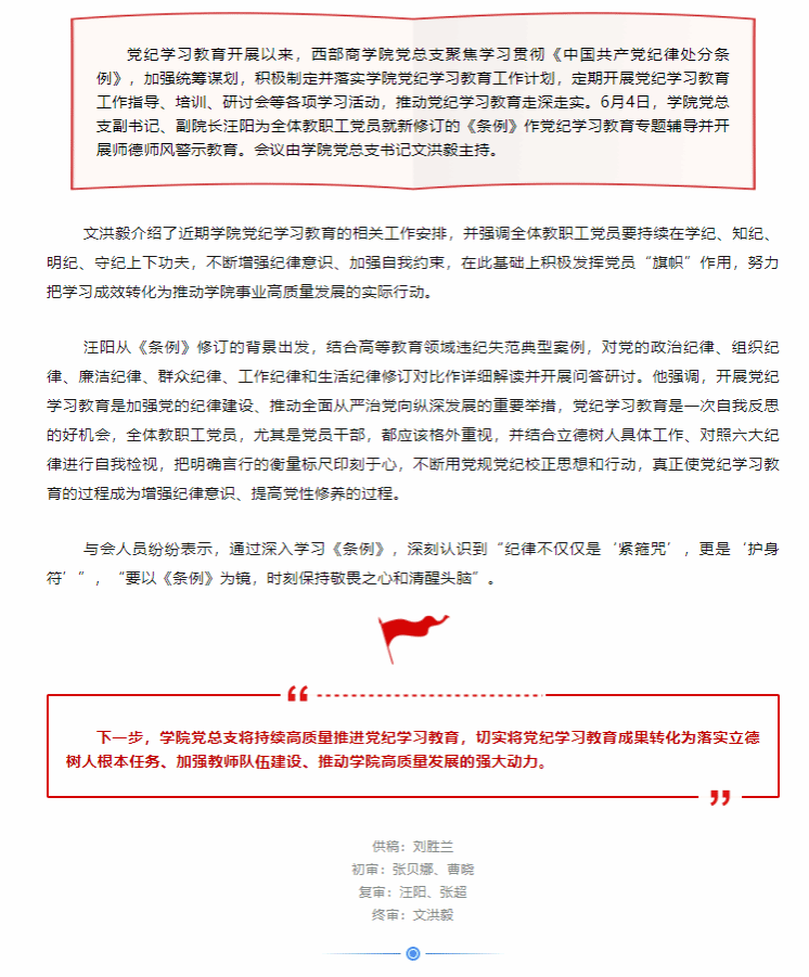 党纪学习教育|西部商学院组织开展党纪教育专题辅导