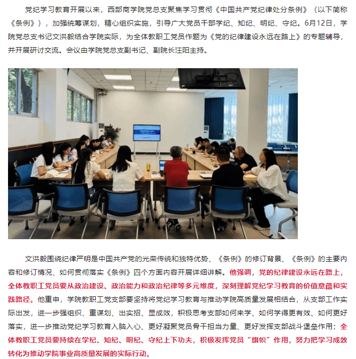 党纪学习教育|西部商学院深入开展党纪学习教育